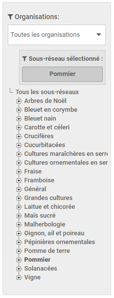 Ce filtre fonctionne de la même façon que le filtre par sujet. Il couvre les principales productions agricoles et les principaux produits transformés du Québec.