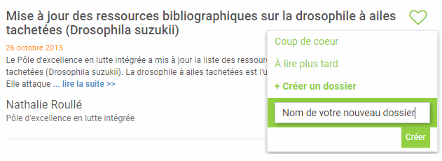 Deux dossiers sont proposés par défaut (Coup de cœur et À lire plus tard), mais il est possible de créer vos dossiers personnalisés.