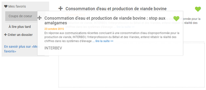 Les contenus sont classés par date de l’ajout en chronologie inversée. Il est possible de déplacer un contenu de « Mes favoris » d’un dossier à l’autre; il suffit de le glisser et de le déposer.