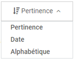 Pour modifier l’ordre d’affichage des résultats de recherche, utilisez le filtre : Pertinence - Date - Alphabétique :