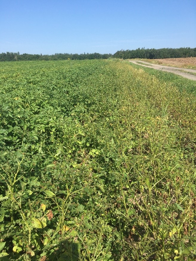 Aucun cas de mildiou de la pomme de terre n’est à signaler au Québec depuis le début de la présente saison. Le site Web du USA Blight ne mentionne pas de nouveau cas en date du 19 août, ce qui limite le tout à 5 cas déclarés et seulement 2 dans la pomme de terre (les autres étant dans la tomate). Le génotype US-23 est identifié, soit celui qui est sensible au métalaxyl-M. Concernant des réseaux de capteurs de spores en opération au Canada, des spores de mildiou ont été capturées le 13 août au Nouveau-Brunswick, mais toujours rien ou rien de récent ailleurs (Ontario, Manitoba, Île-du-Prince-Édouard). Pour le Québec, des producteurs-collaborateurs de quelques régions ne rapportent pas non plus de spores détectées. Malgré le temps chaud et plutôt sec qui perdure, des conditions parfois propices au champignon peuvent survenir par endroits, comme l’a démontré le modèle prévisionnel Miléos en cours de période. Une hygrométrie élevée la nuit et le matin peut provoquer une sporulation du champignon, en combinaison ou non avec une irrigation. Il faut donc maintenir une protection fongicide jusqu'au défanage complet, en particulier où l’on retrouve des plants de pomme de terre avec encore du feuillage sain.