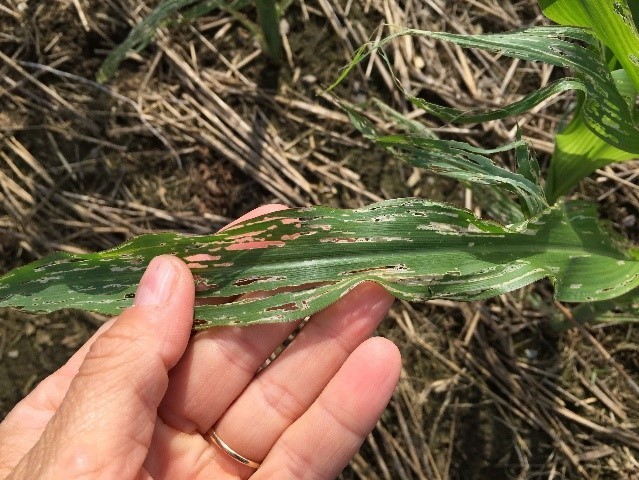 Les papillons femelles peuvent pondre dans différentes cultures dont le maïs, les céréales et les plantes fourragères, notamment les prairies de graminées. Elles peuvent également poindre sur les mauvaises herbes. Si des masses d’œufs ont été pondues tôt en saison, les larves pourraient actuellement avoir atteint un stade de développement qui soit dommageable pour les cultures. Les larves peuvent s’alimenter du feuillage et causer de la défoliation sur plusieurs cultures.