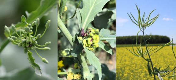 Ce sont surtout les champs semés tardivement qui sont les plus à risque. Durant les stades sensibles, la CCF peut causer le chiffonnement ou la courbature des feuilles, la déformation des bourgeons et la mort du point végétatif ou de l’inflorescence produisant des cicatrices de texture liégeuse. Lors d’infestation sévère, elle peut causer l’arrêt de l’élongation de la tige principale du canola ou induire la mort du bourgeon terminal. Plus tard en saison, les plants endommagés présentent des bouquets de siliques générant des retards dans la maturité du canola.