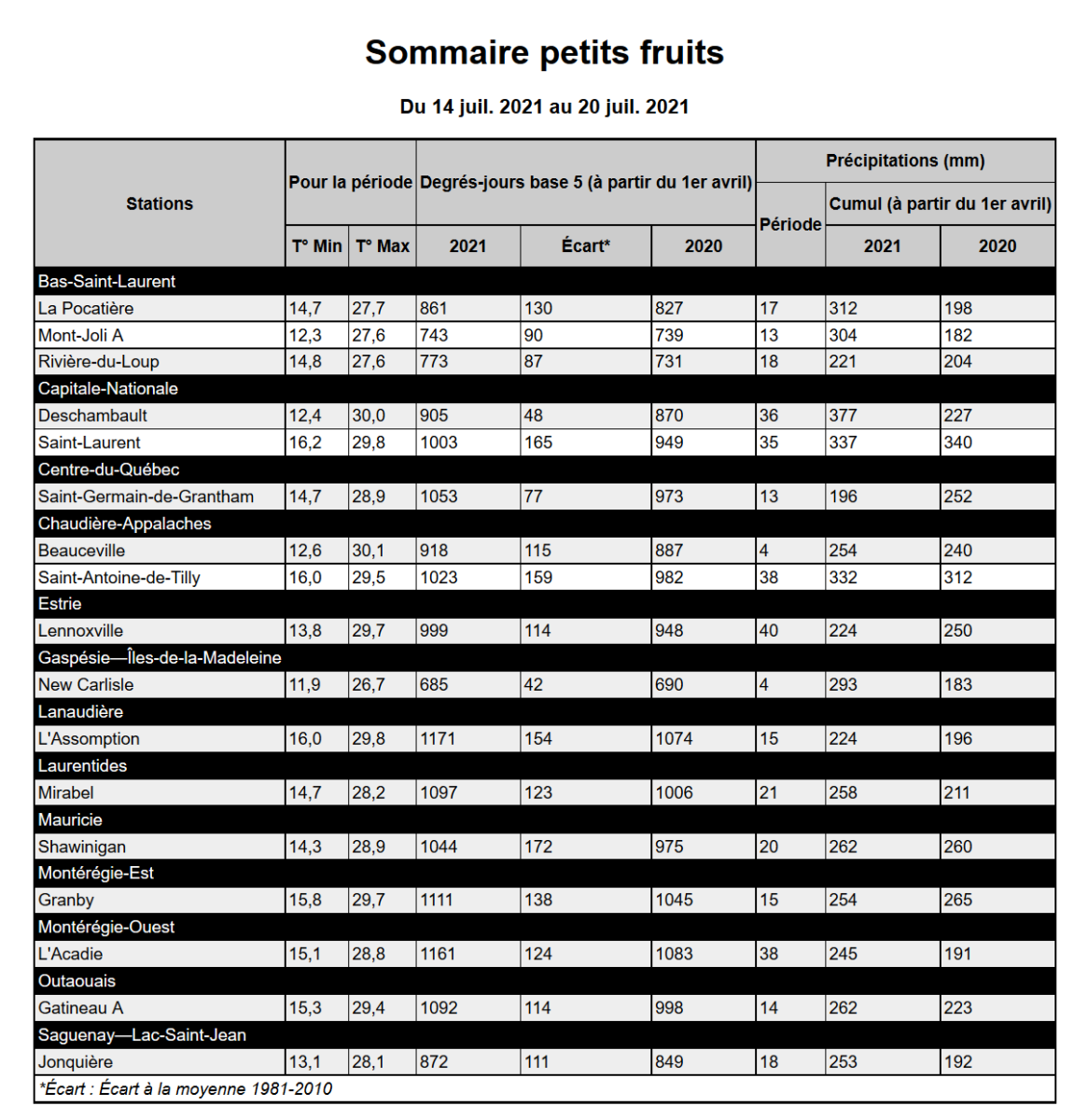 sommaire agrométéorologique du 14 au 20 juillet 2021.