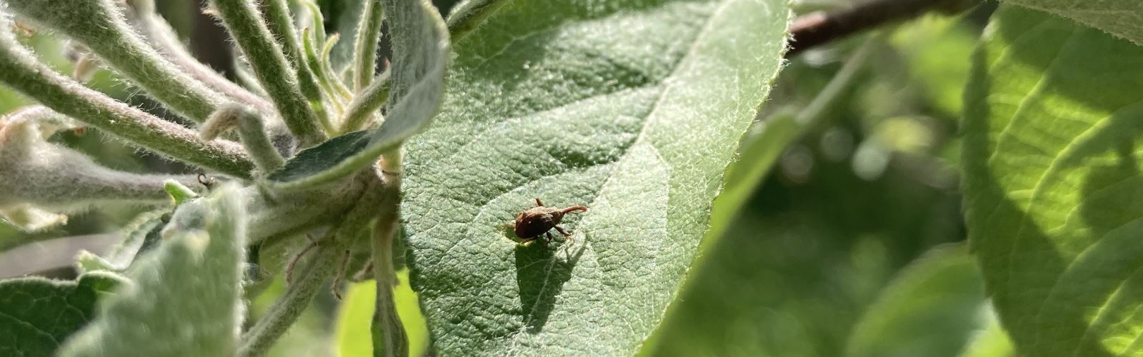 Les collaborateurs du Réseau ont également rapporté les premières observations de dommages de cécidomyie du pommier, de larves de punaise de la molène et de punaise de la pomme, d’adulte de charançon de la pomme et les premières pontes de tétranyque rouge.