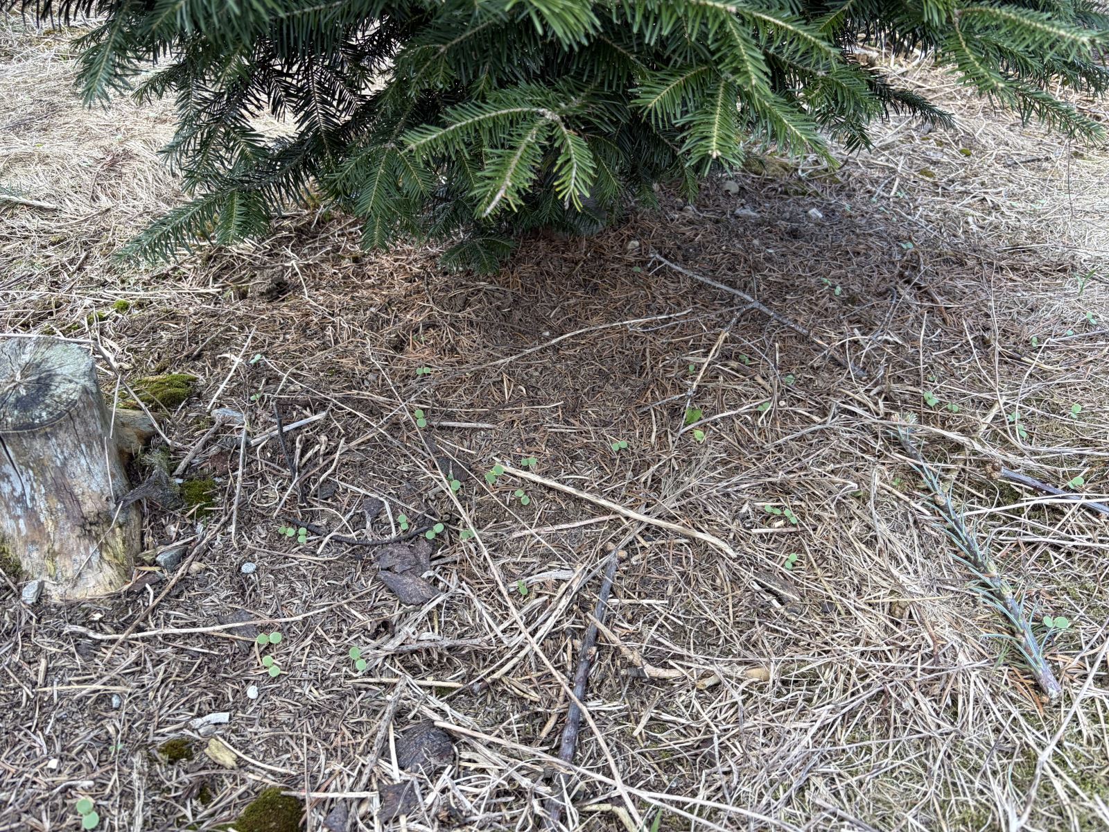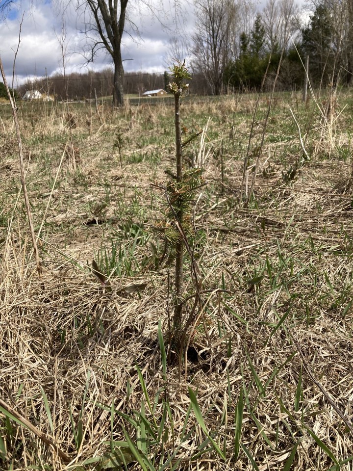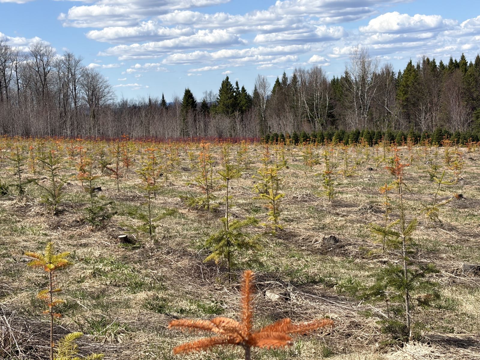 Dessiccation hivernale sur de jeunes arbres Canaan. Jeunes arbres affectés par la sécheresse 2025, parfois avec des symptômes de pourriture racinaire. Dommages des chevreuils en Estrie et en Montérégie. Plantation commencée en Estrie. Début d'émergence des mauvaises herbes. Dépistage du puceron des pousses du sapin en Estrie.