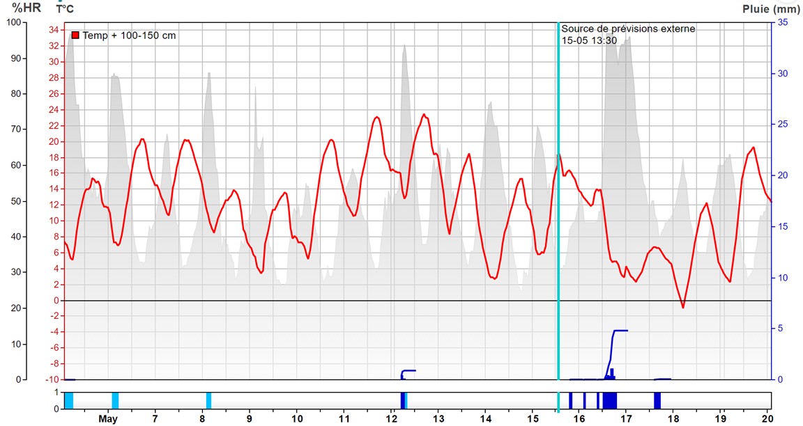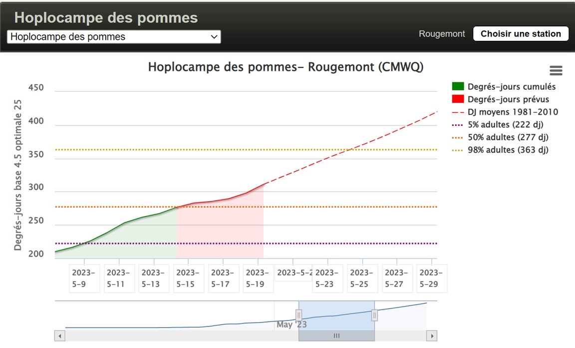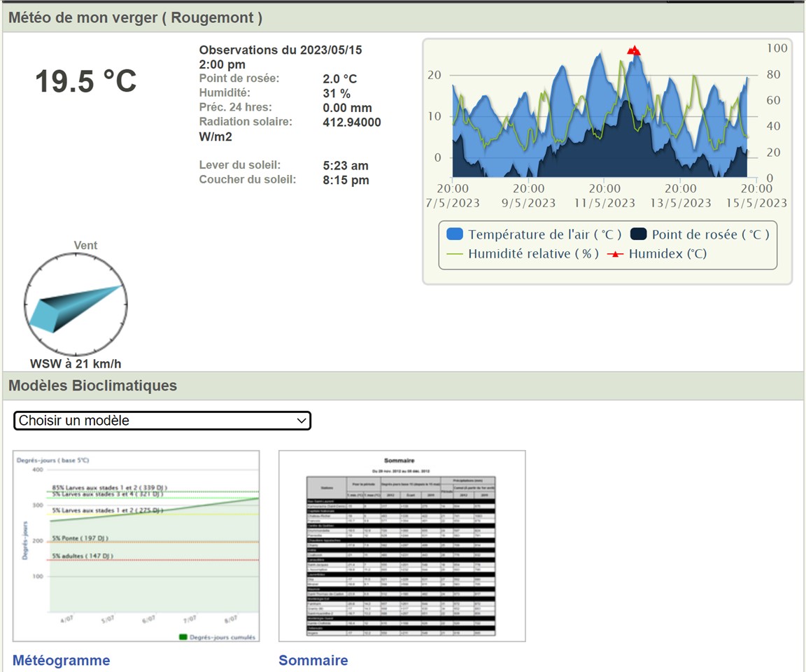 Des modèles pour les stades phénologiques et les insectes sont disponibles via Agrométéo.