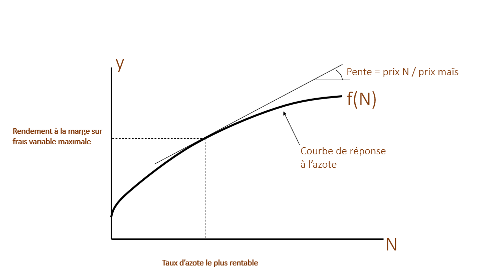 iii Selon M. Bullock, le calcul différentiel et intégral permet de prouver que la marge sur frais variable maximale correspond à l’endroit de la courbe de réponse où la pente est égale au ratio entre le prix de l’intrant (ex. 1 kg N) et le prix de l’extrant (ex. 1 tonne de maïs).