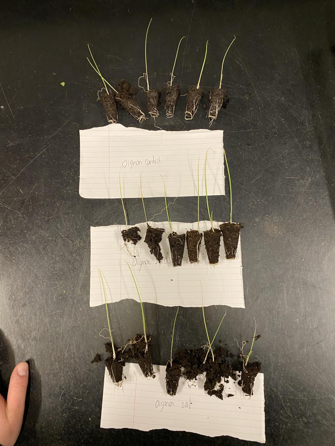 L’utilisation des CAMs pour les transplants de légumes est peu documentée et a le potentiel de réduire l’utilisation d’engrais chimique, les coûts de fertilisation et d’augmenter le succès de l’établissement au champ (Vosátka, 1995). Une expérience en serre sur l’inoculation des graines d’oignons (Allium Cepa L) et de roquette (Erutica Sativa) (cette dernière dans la famille des Brassicacées) a été faite afin de constater l’effet de la mycorhize sur les transplants avant la transplantation pour un hôte mycorhizien et un hôte non mycorhizien. Les graines ont été plantées dans des casseaux de 200 cellules et ont été soumises à trois traitements différents : un traitement dans lequel les graines sont inoculées avec MYKE® (inoculant commercial de CAM), un traitement dans lequel le sol a été inoculé avec MYKE® et un traitement contrôle sans inoculation. Aucun traitement n’a reçu de fertilisation. Les mesures de hauteurs (cm) ainsi que de biomasse (g) ont été prises pour une période de cinq semaines sur les plants d’oignon et de roquette.