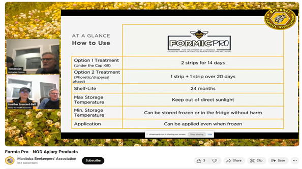 Dans cette chronique, je vous résume quelques informations pertinentes sur la façon optimale d’utiliser le Formic Pro, tel que présenté par Tom Nolan (représentant des ventes) et Heather Broccard-Bell (chercheure), tous deux travaillant pour la compagnie NOD Apiary Products Ltd. Vous pouvez visionner le webinaire complet sur la page Youtube de l'Association des apiculteurs du Manitoba.