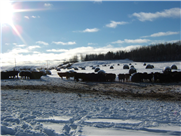 Description l'utilisation de pâturage de balles de foin sur sol gelé pour les bovins de boucherie en respectant les distances entre les balles et une distance à respecter des cours d'eau et de puits utilisé au Manitoba. Bale grazing beef cattle during Manitoba's long winters can save producers time,