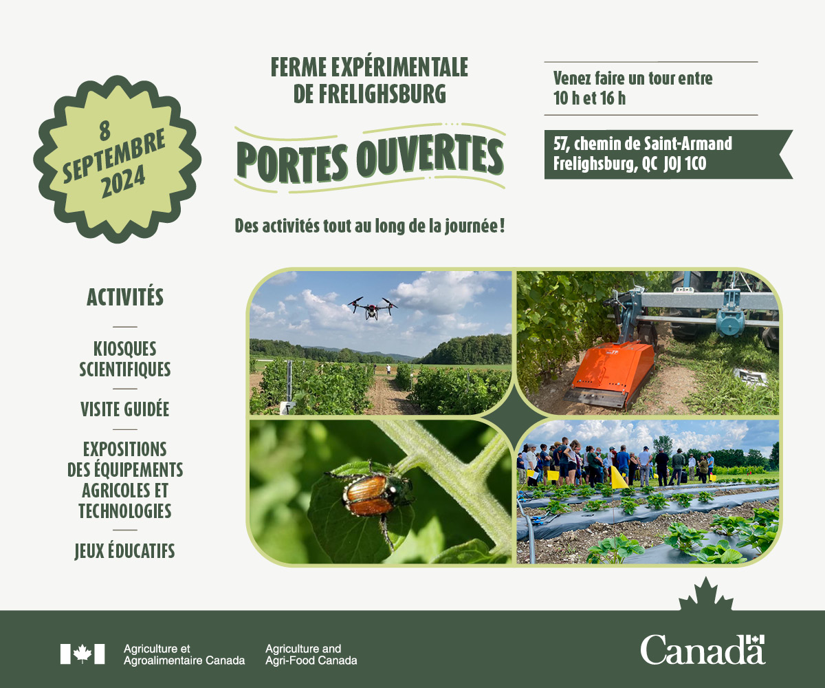The Saint-Jean-sur-Richelieu Research and Development Centre invites you to an open house at the Frelighsburg Experimental Farm on Sunday, September 8!
