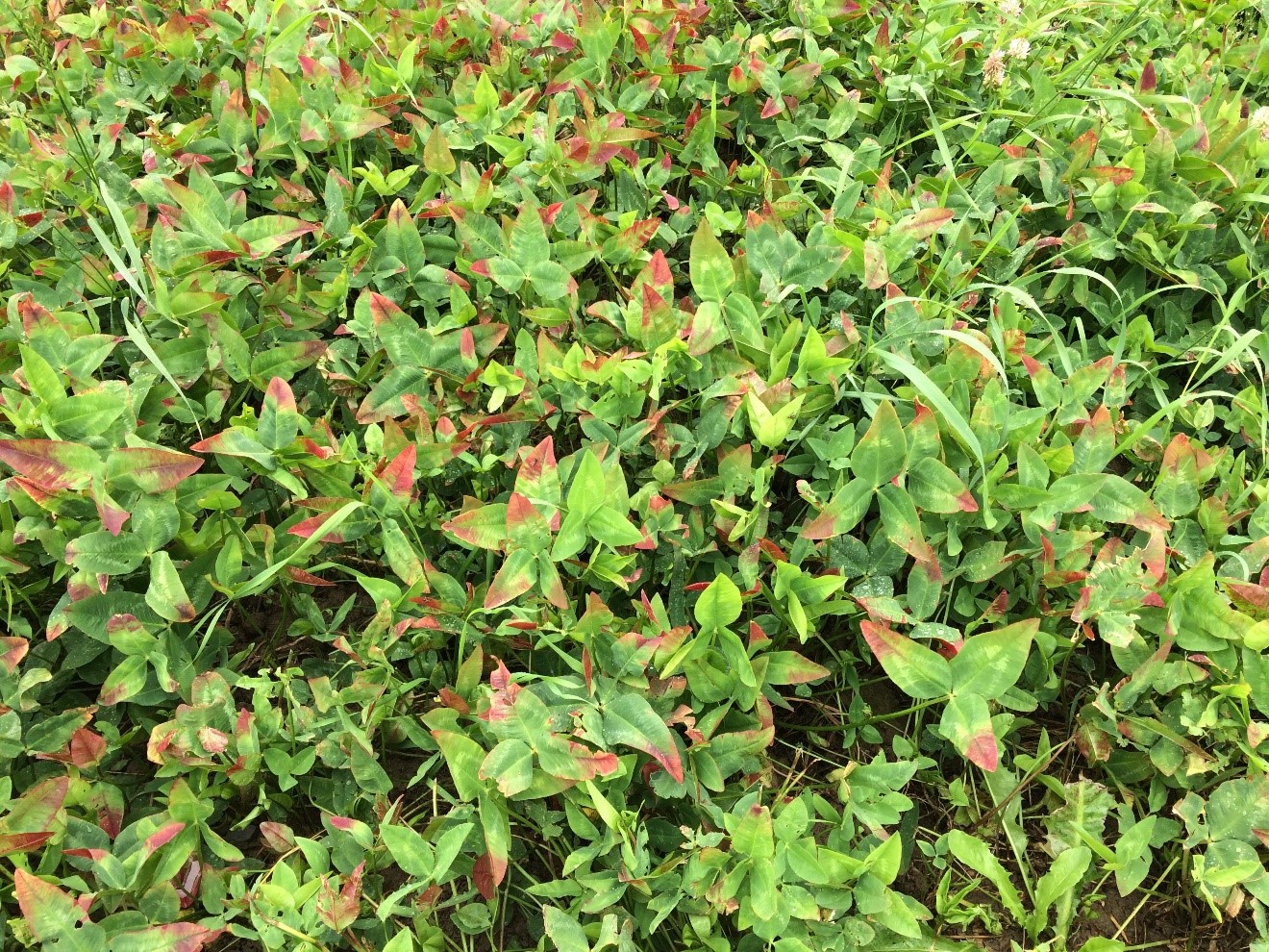 La cicadelle de la pomme de terre peut également causer des dommages dans la culture du trèfle provoquant le rougissement des feuilles (photo 5). Les variétés de trèfle moins pubescentes seraient plus sensibles aux attaques du ravageur. Il n’existe malheureusement pas de seuil économique d’intervention dans cette culture. Dans un article publié en 2019 (en anglais), des spécialistes de l’Université de l’Ohio suggèrent pour la culture du trèfle rouge, en l’absence de seuils, de se référer aux seuils normaux à élevés recommandés pour les luzernières (c’est-à-dire que le trèfle pourrait supporter un peu plus de cicadelles que la luzerne).
