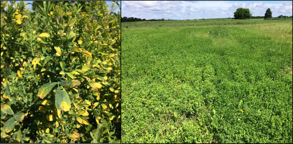 Dépendamment du niveau des populations de l’insecte, qui doit être évalué par un dépistage avec un filet fauchoir, du stade et de la hauteur de la luzerne, la meilleure stratégie pourrait être de devancer la coupe et de surveiller les populations par la suite. Pour en savoir plus sur la biologie de l’insecte, comment le dépister et les stratégies d’intervention, référez-vous à la fiche technique La cicadelle de la pomme de terre dans la luzerne.