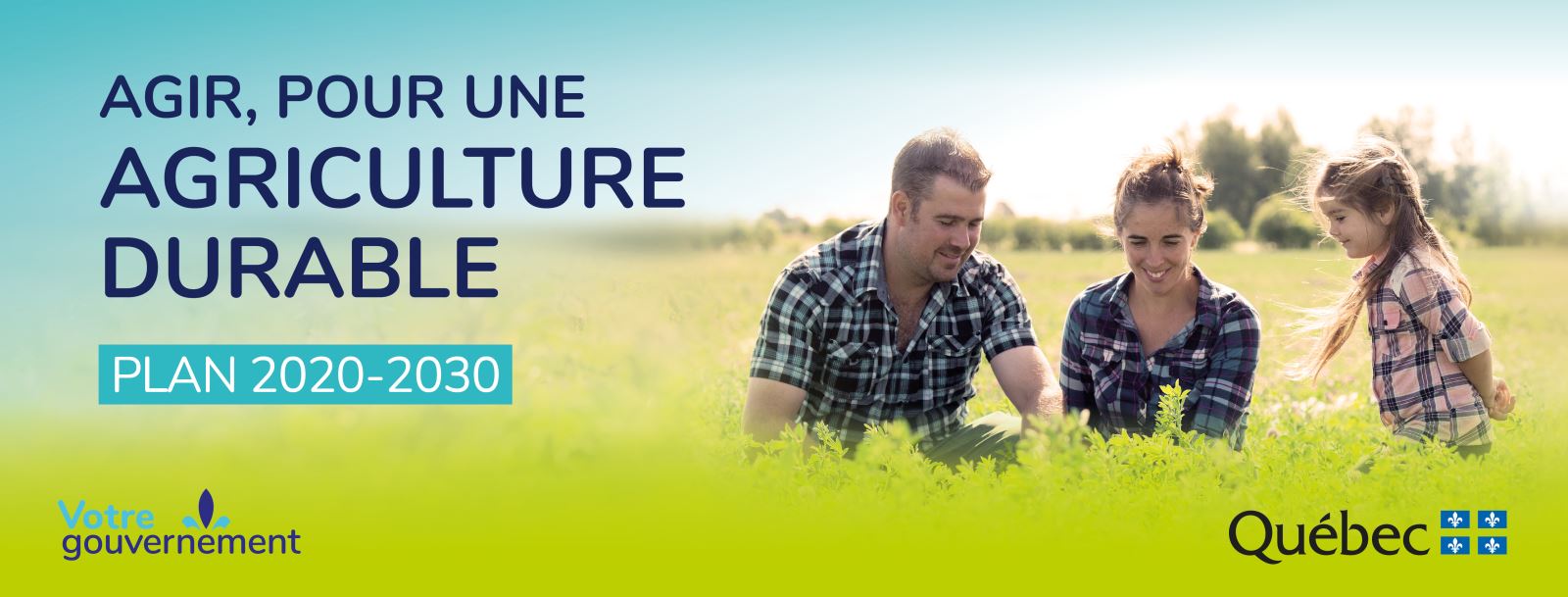 Le Plan d’agriculture durable 2020-2030 vient appuyer les engagements climatiques et de développement durable du gouvernement du Québec. Il place les entreprises agricoles au cœur de l’action et du développement économique. Il leur offre un ensemble de possibilités pour accélérer, d’ici 2030, l’adoption des meilleures pratiques agroenvironnementales.
