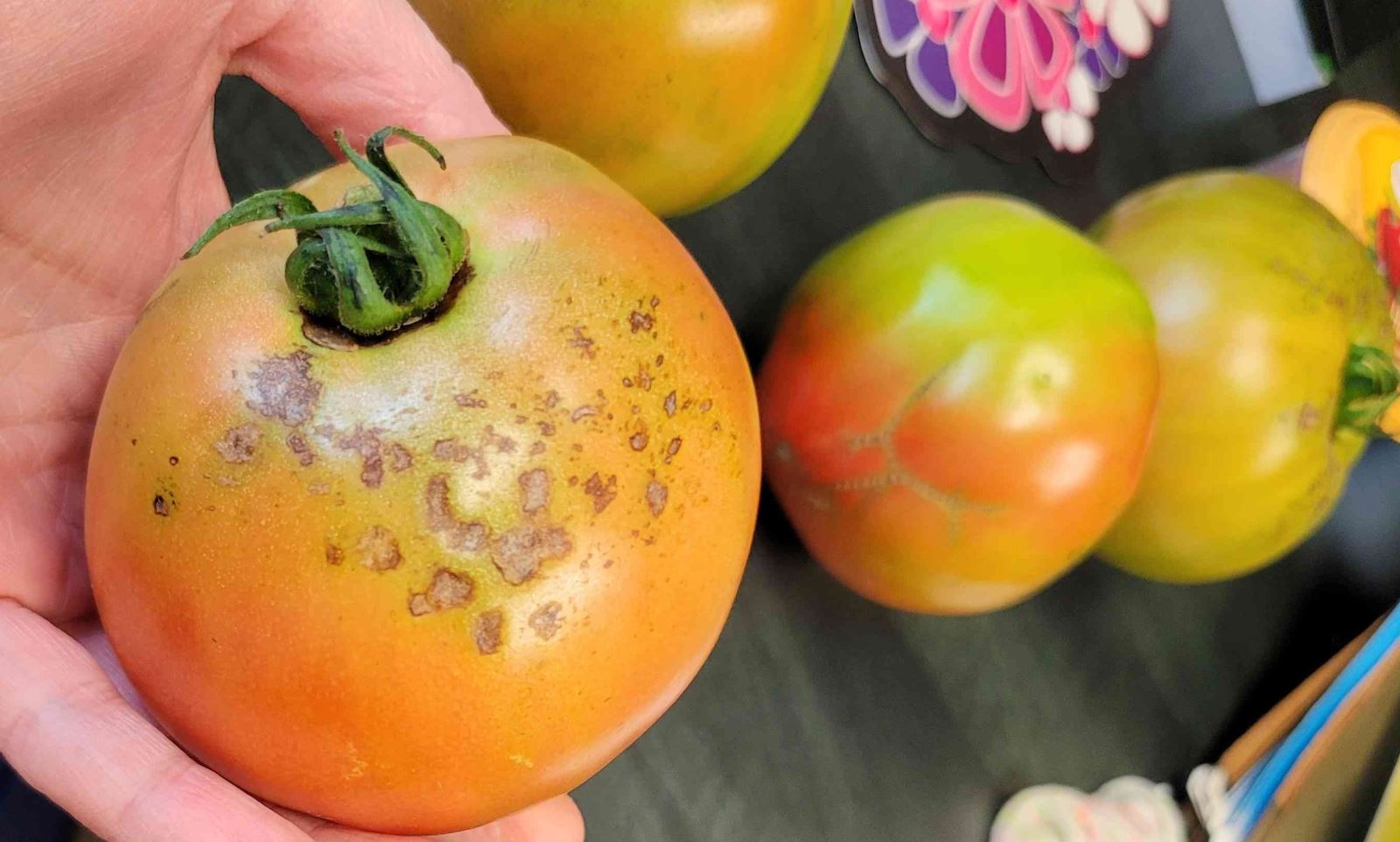 Dommage dû à des gouttes d'eau froide restées sur le fruit sur une longue période