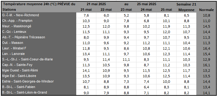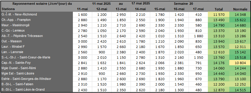 Rayonnement solaire de la semaine 20 et prévisions pour la semaine 21