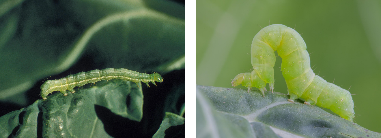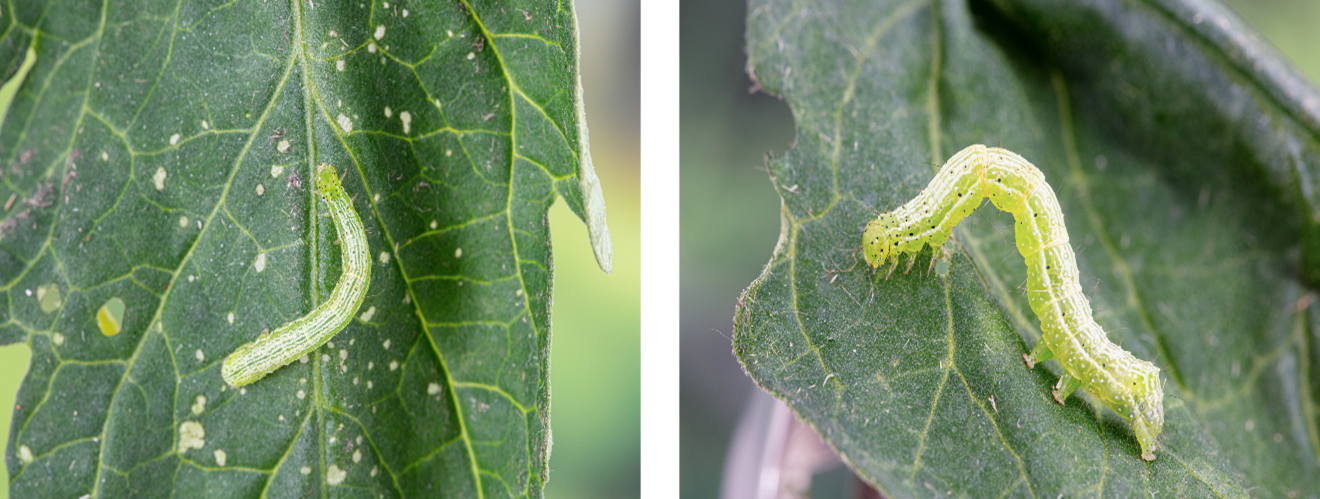 Un traitement inefficace contre une infestation présumée de la fausse-arpenteuse du chou (Trichoplusia ni) peut être le signe qu’il s’agit en réalité de Chrysodeixis includens, puisque les larves des deux espèces se ressemblent fortement (voir ci-dessous).