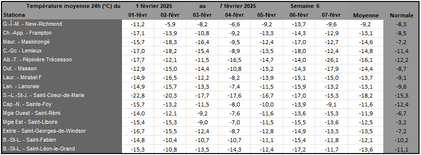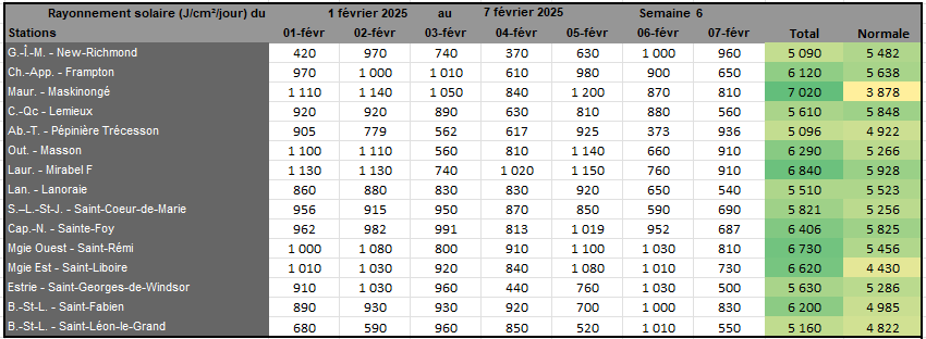 Rayonnement solaire de la semaine 6 et prévisions pour la semaine 7