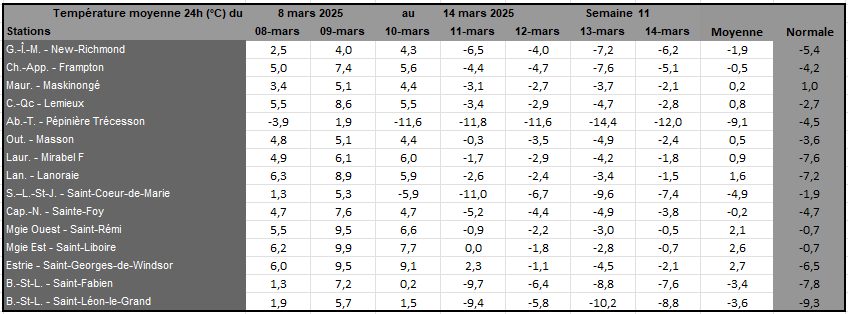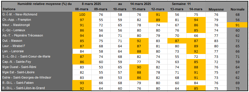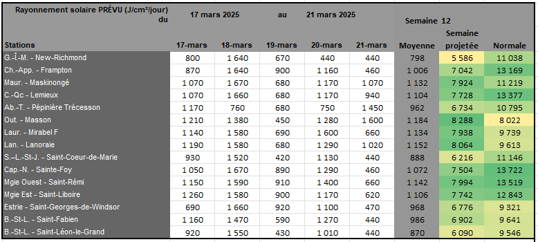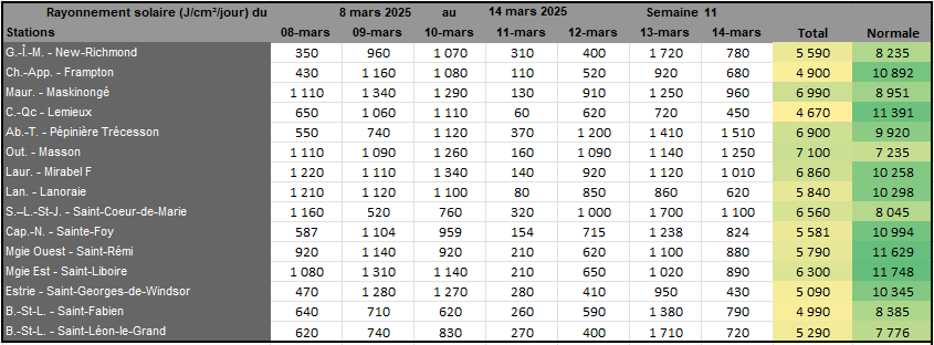 Rayonnement solaire de la semaine 11 et prévisions pour la semaine 12