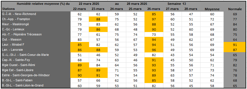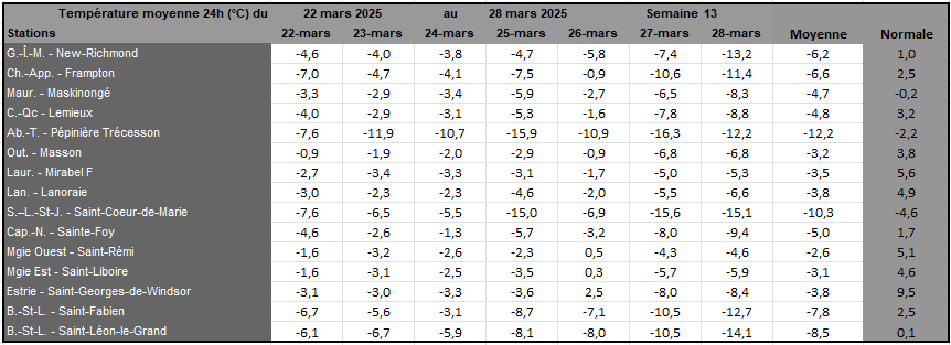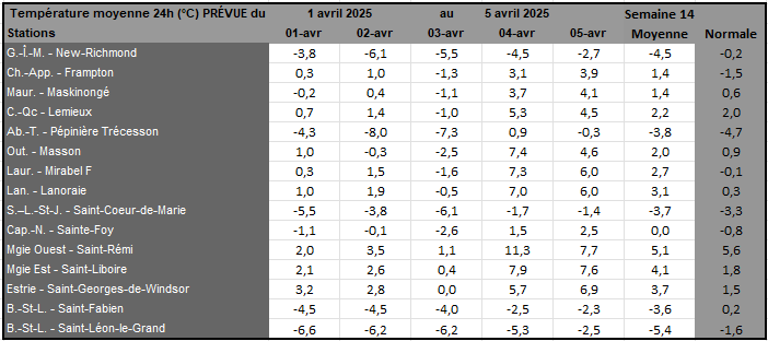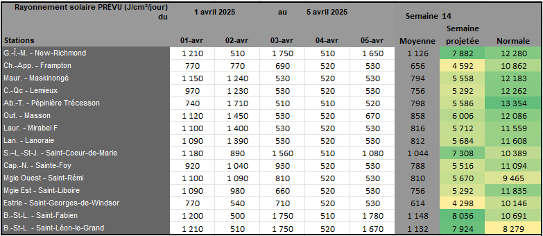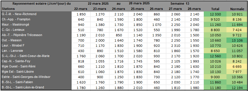 Rayonnement solaire de la semaine 13 et prévisions pour la semaine 14