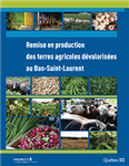 et de consultations des membres de la Table de concertation bioalimentaire du Bas-Saint-Laurent (TCBBSL) et des partenaires de la filière agroalimentaire bas-laurentienne, identifie différents moyens qui mèneront à l'utilisation des terres agricoles dévalorisées. Dans ce contexte, la Direction régionale du MAPAQ au Bas-Saint-Laurent a été identifiée comme porteur, en collaboration avec différents partenaires, dans la mise en œuvre de deux objectifs du plan stratégique, visant à remettre en culture les TAD et à favoriser le développement des productions traditionnelles et émergentes pour lesquelles la région bénéficie d'un avantage comparatif générateur de développement. La trousse contient 21 fiches d'information réparties en trois catégories: les productions émergentes de grandes cultures, les productions horticoles et les productions animales. De plus, trois fiches synthèses résument l'Étude sur la santé des sols agricoles et l'Inventaire et caractérisation des TAD du Bas Saint-Laurent et Info-sols.