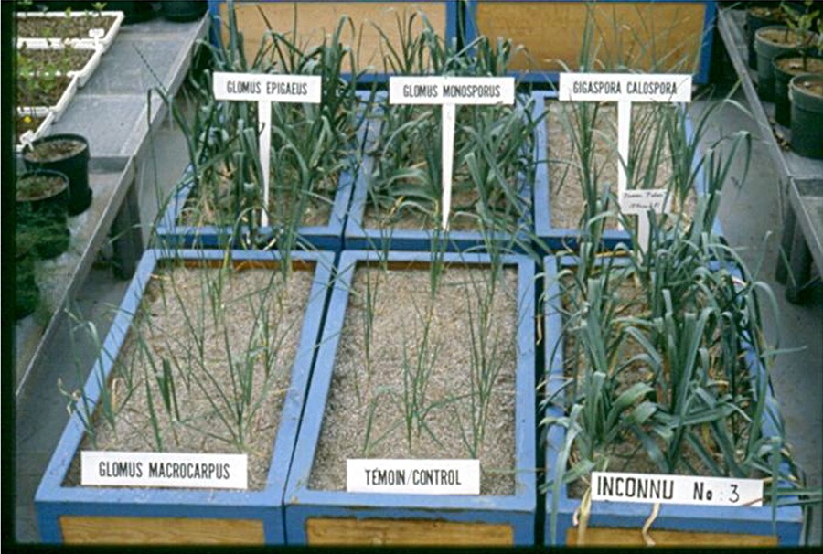 Jusqu'à la fin des années 1980, la seule méthode disponible consistait à cultiver des plantes en serres dans un substrat minéral, le Turface, l’argile montmorillonite cuite. Le poireau s’y prêtait particulièrement bien. Cette méthode, développée par Christian Plenchette dans sa thèse de Ph. D. à Laval, a permis d’isoler plusieurs espèces de ces champignons et de les multiplier pour conduire diverses expériences. L’inconnu #3 sur  cette photo n’est nul autre que le fameux Rhizoglomus irregulare DAOM 197198, maintenant utilisé partout au monde. Dans ces conditions, les plants de poireaux ne peuvent pratiquement pas se développer sans mycorhizes, en dépit de l’addition de la solution complète de Long Ashton contenant tous les minéraux essentiels.