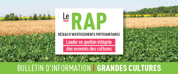 Ce bulletin d'information a été révisé par Pierre-Antoine Thériault, agronome, M. Sc. (MAPAQ). Pour des renseignements complémentaires, vous pouvez contacter l’avertisseur du réseau Grandes cultures ou le secrétariat du RAP. La reproduction de ce document ou de l’une de ses parties est autorisée à condition d'en mentionner la source. Toute utilisation à des fins commerciales ou publicitaires est cependant strictement interdite.