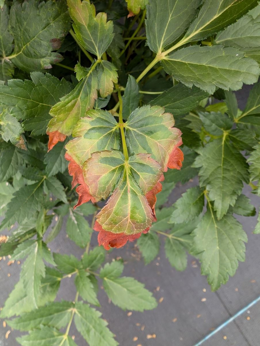 Pour faciliter l'identification en pépinière, les images suivantes montrent les dommages de la cicadelle de la pomme de terre sur divers végétaux. La décoloration et les déformations peuvent facilement être confondues avec d’autres problèmes de croissance.