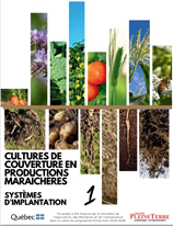 des cultures de couverture en production maraîchère en Montérégie. Afin de bonifier les fiches, les observations ou résultats d’autres essais au Québec ont été ajoutés en références. Pour les plus novices, ces fiches sont un point de départ afin d’éviter certaines erreurs de base et permettent aussi de diversifier les systèmes déjà en place sur les entreprises plus expérimentées. Elles ne représentent donc pas un Guide complet, mais plutôt une bougie d’allumage. Il est recommandé de lire la fiche 1 au départ et se diriger vers la fiche correspondant à votre besoin par la suite. Bonne consultation! Fiche 1: Réflexions préliminaires- inclut aussi une section Gestion intégrée des ennemis de cultures (recommandée en lecture initiale) Fiche 2: Cultures de couverture en intercalaire_ culture sur paillis plastique Fiche 3: Cultures de couverture en interclaire_ après le dernier sarclage d'une culture de plein champ Fiche 4: Cultures de couverture en dérobée_ après une récolte hâtive Fiche 5: Cultures de couverture en dérobée_ après une récolte tardive Fiche 6: Cultures de couverture en dérobée_avant une implantation tardive Fiche 7: Cultures de couverture_pleine saison Ce projet a été financé par le ministère de l’Agriculture, des Pêcheries et de l’Alimentation dans le cadre du programme Prime-Vert 2023-2026.