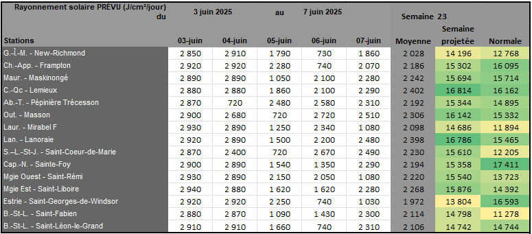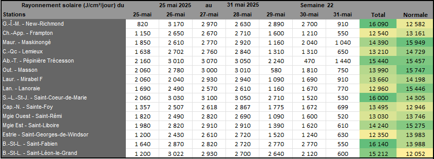 Rayonnement solaire de la semaine 22 et prévisions pour la semaine 23