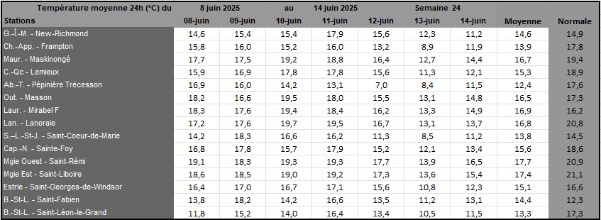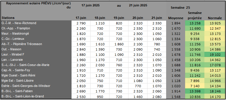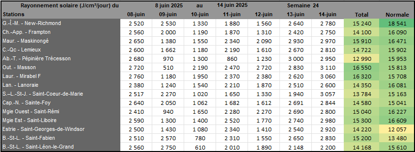 Rayonnement solaire de la semaine 24 et prévisions pour la semaine 25