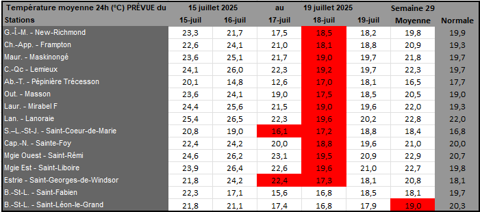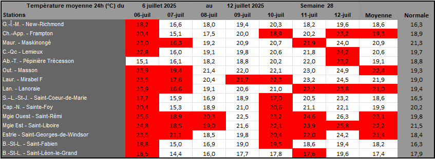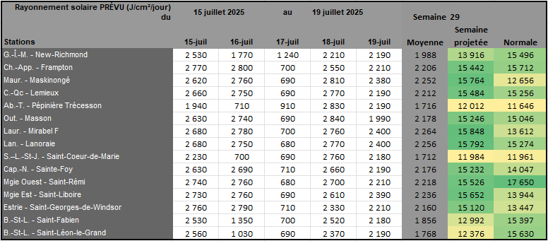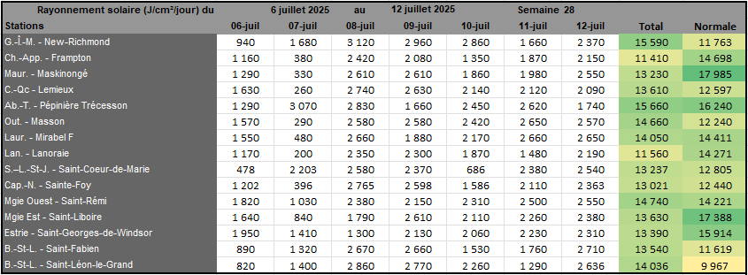 Rayonnement solaire de la semaine 28 et prévisions pour la semaine 29