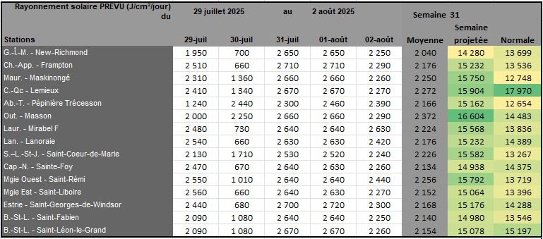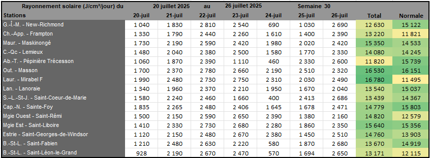 Rayonnement solaire de la semaine 30 et prévisions pour la semaine 31