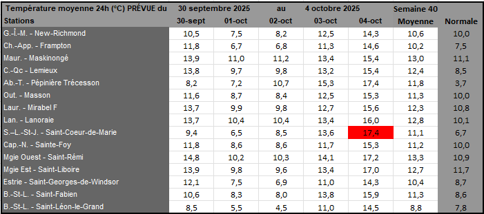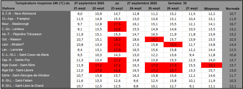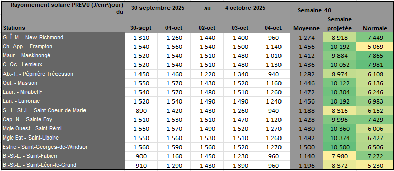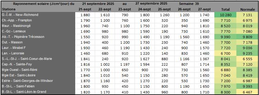 Rayonnement solaire de la semaine 39 et prévisions pour la semaine 40