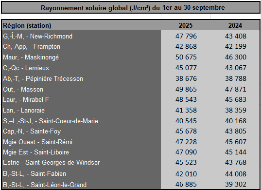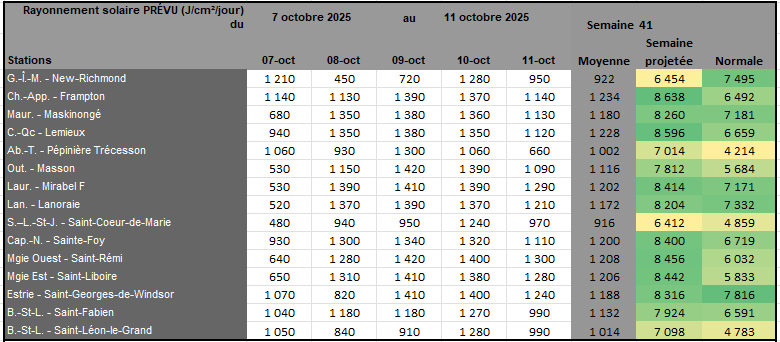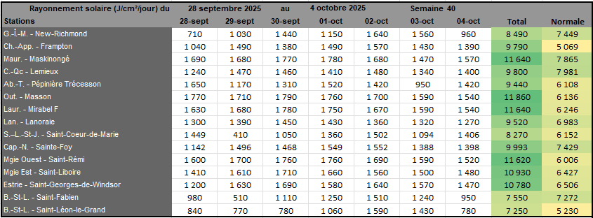 Rayonnement solaire de la semaine 40, prévisions pour la semaine 41 et bilan mensuel