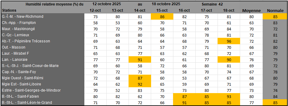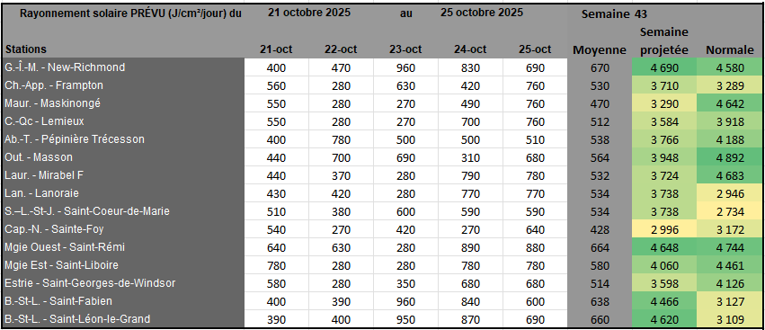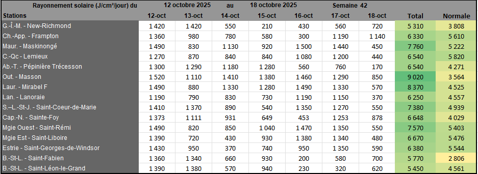 Rayonnement solaire de la semaine 42 et prévisions pour la semaine 43