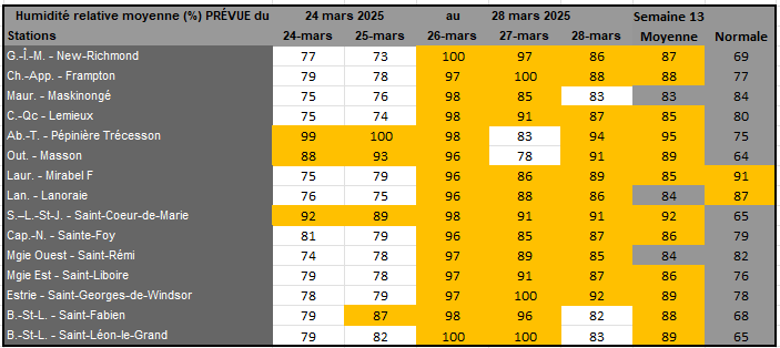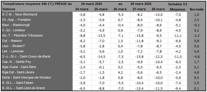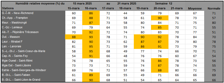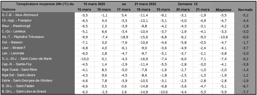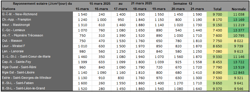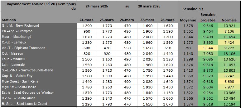 Rayonnement solaire de la semaine 12 et prévisions pour la semaine 13