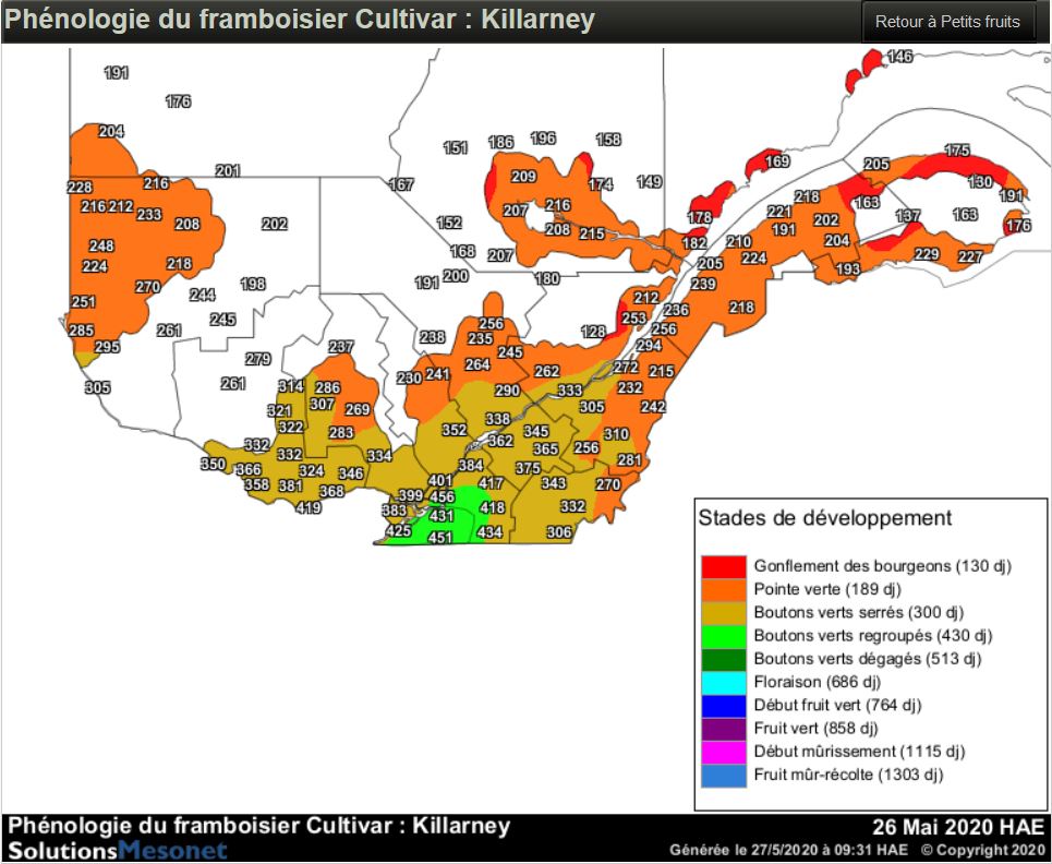 Phénologie du framboisier cultivar Killarney