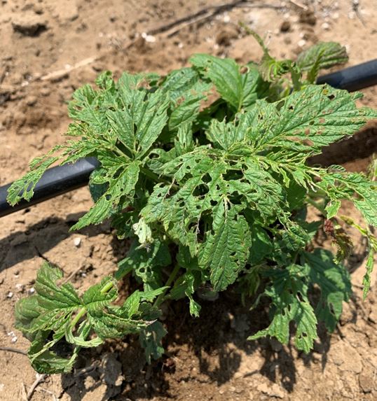 Empoasca fabae). Les dégâts d’alimentation observés se traduisent par une déformation du feuillage et/ou par l’apparition de petites plaques jaunes sur les feuilles. La cicadelle de la pomme de terre n’est pas connue pour transmettre de virus. Il s’agit d’un ravageur secondaire dans la culture du framboisier. Toutefois, si vous avez un doute quant à la nécessité d’effectuer un traitement ou non, n’hésitez pas à consulter votre agronome. De l’information sur ce ravageur est également disponible sur la fiche IRIIS