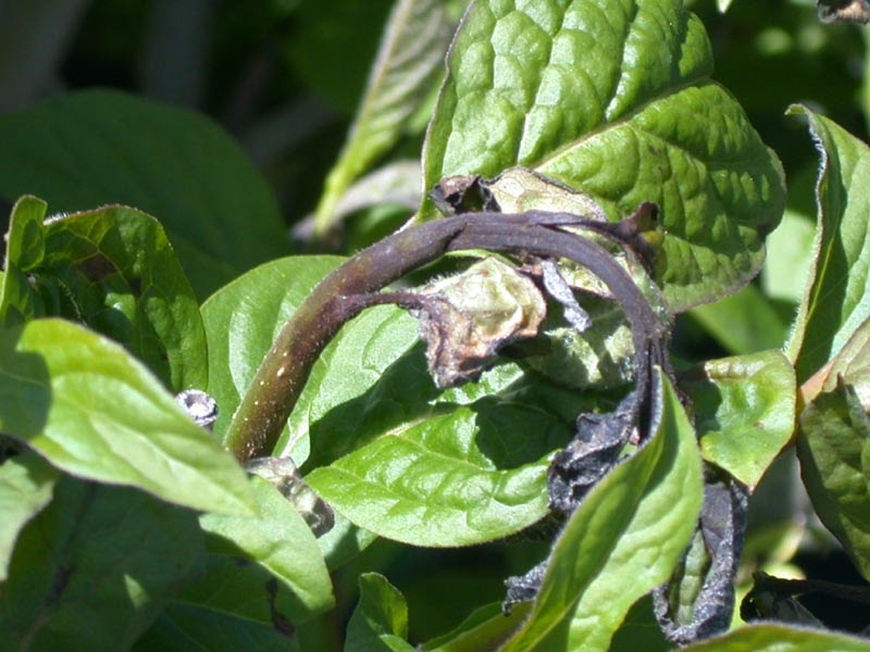Les symptômes sont des bourgeons, des fleurs ou des pousses terminales noircis. Jeter les plants très fortement infectés. Couper les branches des autres lilas présentant des symptômes, par temps sec, 15 cm sous la lésion.