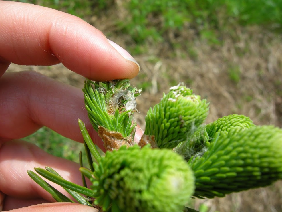 Dommages de la tordeuse des bourgeons de l'épinette sur Picea abies