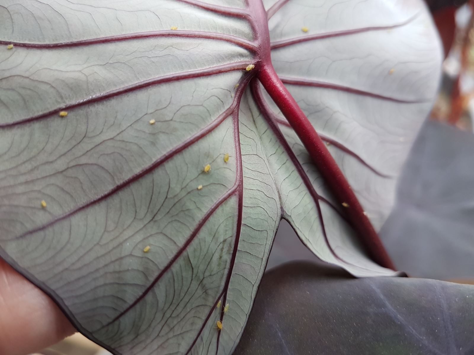 Pucerons sous une feuille de Colocasia