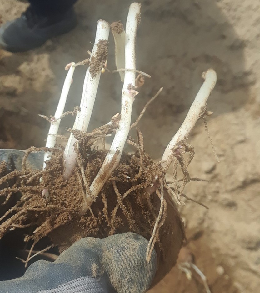 Avec des sols plus humides en plusieurs endroits combinés à des nuits fraîches, des collaborateurs du centre et du sud de la province ont observé un tout début de rhizoctone brun sur des germes (voir la photo ci-dessous) et un peu plus de pourritures de plantons (voir la photo ci-dessous). Dans ce dernier cas, le tout serait relié à une régie déficiente lors de la plantation (plantons non subérisés) et/ou à un excès en précipitations qui a saturé les sols en eau. Un suivi est en cours. Concernant le mildiou de la pomme de terre, la lutte préventive doit débuter dès maintenant, par une bonne gestion des tas de déchets (rebuts) et des repousses de plants de pomme de terre. Cette gestion est obligatoire au Québec et cette pratique est encadrée par l’article 5 du Règlement sur la culture de pommes de terre qui stipule qu’« Entre le début de la levée et le défanage complet des plants de toute culture de pommes de terre, le propriétaire ou le gardien doit, de manière à éviter la propagation du mildiou, éliminer les rebuts de pommes de terre ou les garder dans un endroit fermé ou sous une bâche ». Un bulletin d’information sur le sujet peut être consulté pour en savoir plus sur les pratiques recommandées pour la gestion des rebuts de pommes de terre. Le mildiou est une maladie communautaire et tous doivent contribuer pour limiter les risques de développement du champignon en cours de saison.
