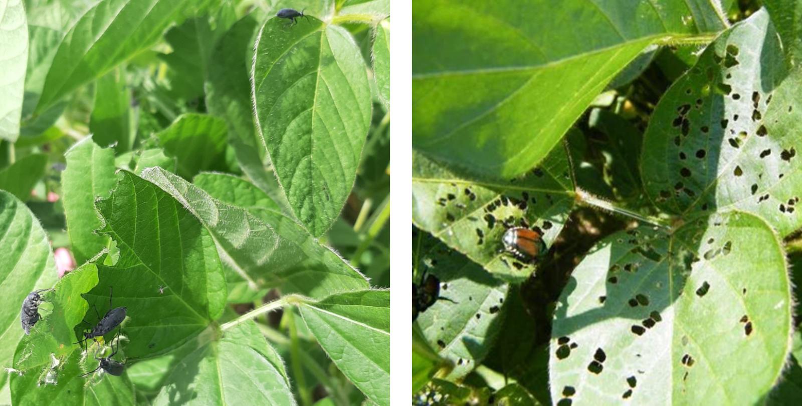 La présence de certains défoliateurs du soya, dont le méloé cendré et le scarabée japonais, a été signalée au RAP Grandes cultures. Au cours de la saison, d’autres ravageurs peuvent être observés, tels que la chrysomèle du haricot, l’altise à tête rouge, les chenilles de belle dame et les criquets. Ces derniers sont particulièrement à surveiller dans les sols sableux.