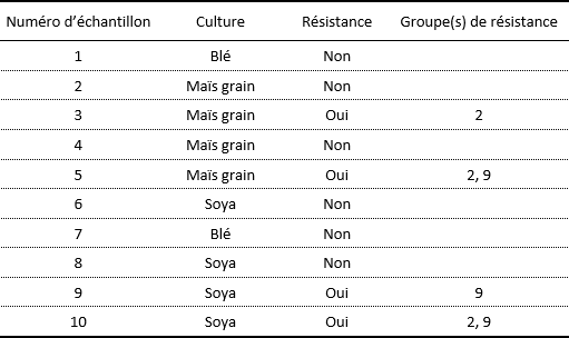 À la suite de la découverte du premier cas de vergerette du Canada résistante au glyphosate en 2021 au Québec, le RAP Grandes cultures a mis sur pied un réseau de dépistage de la mauvaise herbe au printemps 2022 dans la MRC du Haut-Saint-Laurent. Pour le moment, sur les 10 populations de vergerette du Canada suspectées résistantes au glyphosate, quatre se sont avérées résistantes aux herbicides des groupes 2 et/ou 9 (glyphosate).