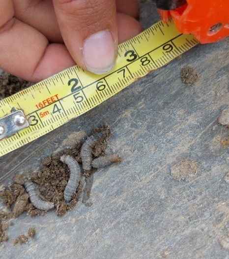 Des dommages causés par la tipule des prairies dans des champs de céréales de printemps et de maïs, ainsi qu’une forte présence de l’insecte dans un champ prêt à semer sur un retour de céréales et de maïs ont été rapportés en Chaudière-Appalaches. De plus, parmi les 24 sites suivis dans le cadre du RAP Grandes cultures, des taux de captures assez élevés sont également observés dans des prairies en Estrie (Ayer’s Cliff : 166 larves/m2) et au Bas-Saint-Laurent (Saint-Moïse :108 larves/m2) et dans un champ de soya en Estrie (Saint-Malo :153 larves/m2). Selon les seuils d’intervention utilisés en Europe et transposables au Québec, des populations printanières de plus de 25 à 50 larves/m2 dans les céréales et de plus de 100 larves/m2 dans les fourrages sont susceptibles de causer des pertes de rendement. Pour identifier la larve de tipule des prairies, consulter cette fiche technique.