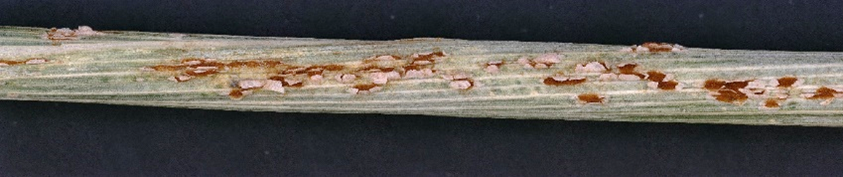| Rouille noire du blé (Puccinia graminis f. sp. tritici) | Sur la tige et/ou sur les deux faces des feuilles, présence de pustules rouges, brunes ou noires, allongées. Leur distribution est aléatoire. | |