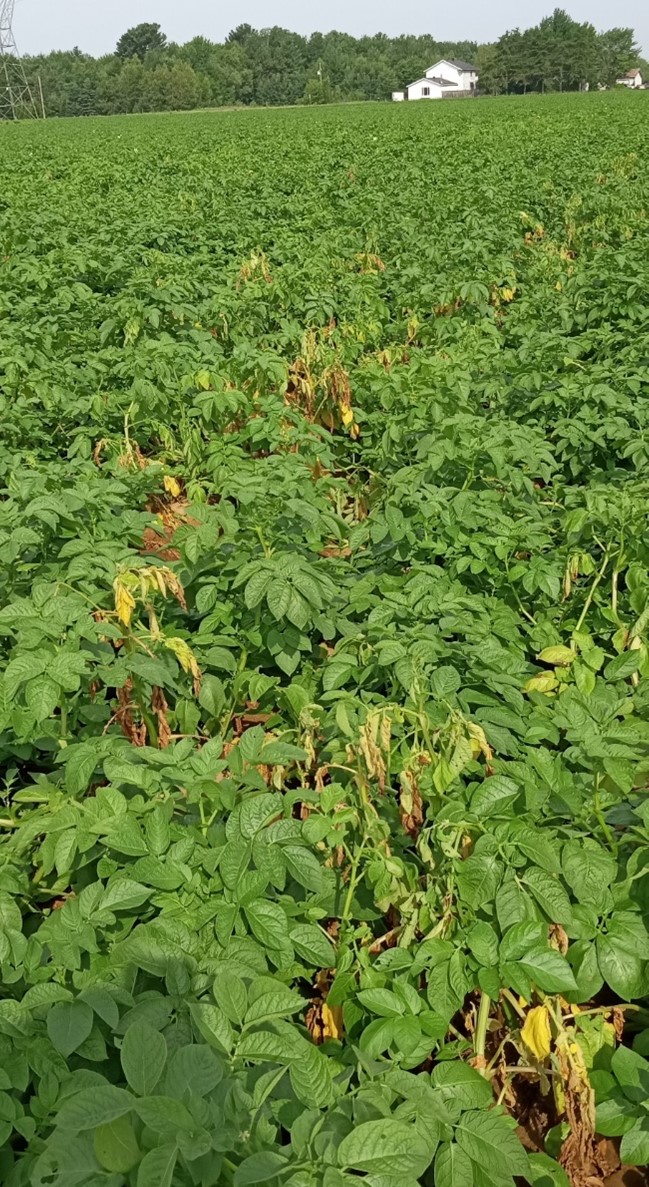 Dans des champs non défanés, des maladies de faiblesse comme la dartrose et le flétrissement verticillien continuent à accompagner le dépérissement de plants, même en présence de températures moins chaudes en cours de période. La présence de ces maladies a été confirmée par des analyses réalisées par le Laboratoire d'expertise et de diagnostic en phytoprotection (LEDP) du MAPAQ. La brûlure hâtive (tache alternarienne) a ralenti ou poursuivi lentement sa progression selon la parcelle et la région. Des producteurs ont pu constater encore cette année que des cultivars semblent plus tolérants que d’autres à ces trois maladies fongiques.