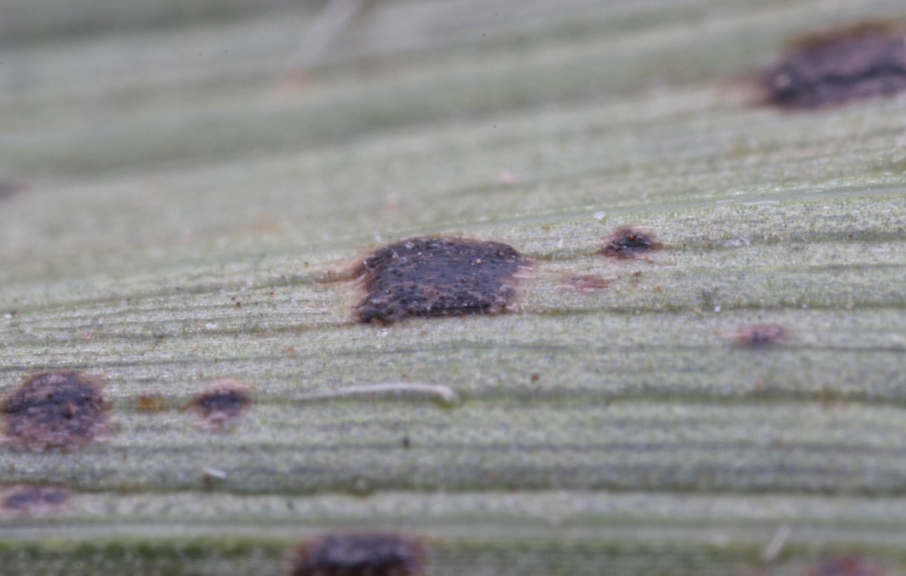 La tache goudronneuse du maïs est une maladie fongique causant des taches noires à l’aspect goudronneux sur les feuilles de maïs et nuisant à la photosynthèse (voir photos ci-dessous). Cependant, l’apparition tardive des symptômes n’entraîne généralement pas d’impact sur les rendements de maïs-grain.